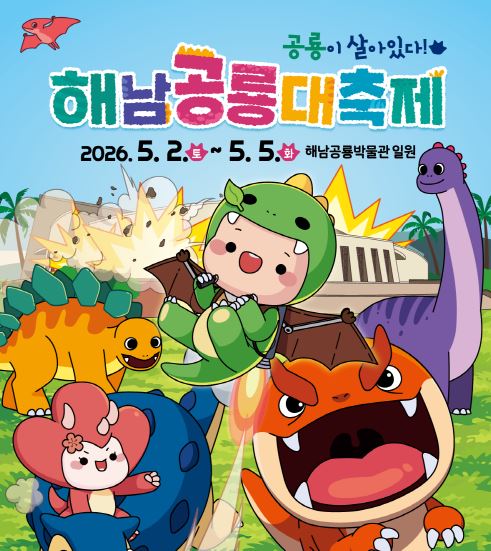 해남 공룡대축제는 전라남도 해남군 황산면에 위치한 해남공룡박물관에서 매년 어린이날을 기념하여 개최되는 가족 중심의 축제이다. 2026 해남공룡대축제는 '공룡이 살아있다'를 주제로, 5월 2일(토)부터 5월 5일(화)까지 4일간 진행될 예정이다. 캐릭터 싱어롱쇼, 공룡로봇쇼, 다양한 서커스와 드론쇼 등 공룡 관련 다양한 컨텐츠가 함께하여 가족들에게 즐거운 추억을 만들 수 있다. 5월 2일에는 어린이날 기념식과 공룡가족음악회 등 저녁까지 공연이 이어질 예정이며, 이후 3일부터 5일까지는 주간 행사로 어린이 놀이터, 서커스, 캐릭터 싱어롱쇼가 진행된다.