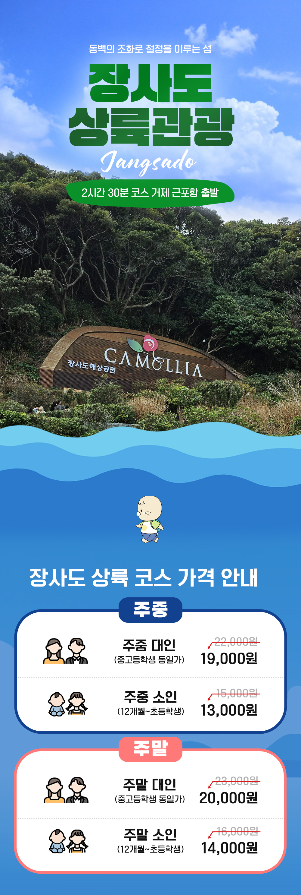 *장사도입장료는 이용당일 승선 전 매표소에서 별도결제 하셔야 승선이용가능합니다.