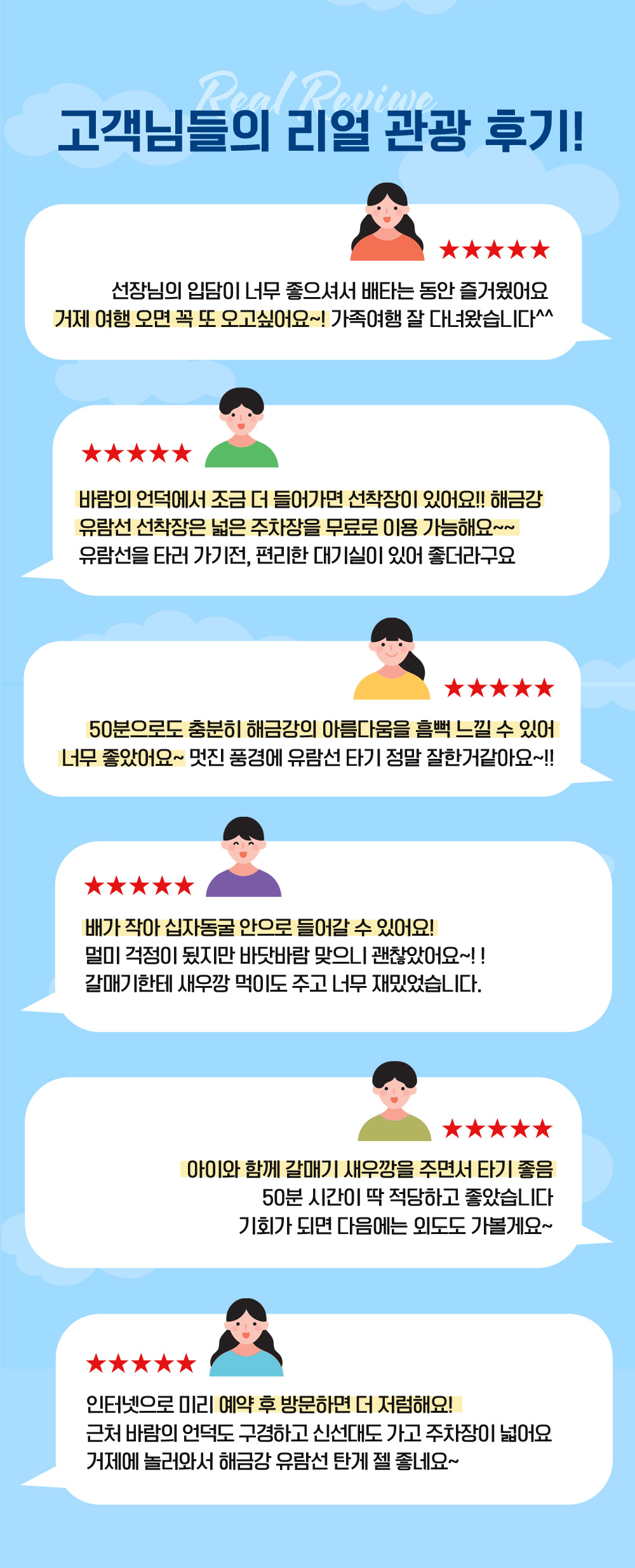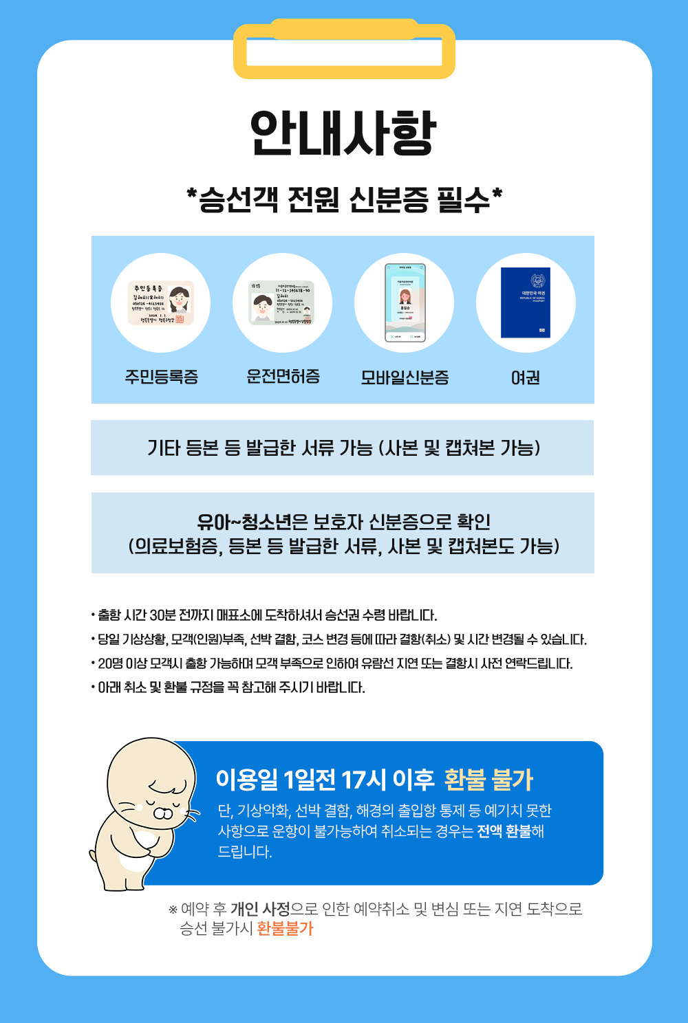 6.본 규정은 주식회사 하늘엔의 자사규정이며 승선 당일 위반 확인시 예약취소되며 약관위반으로 환불되지 않습니다.