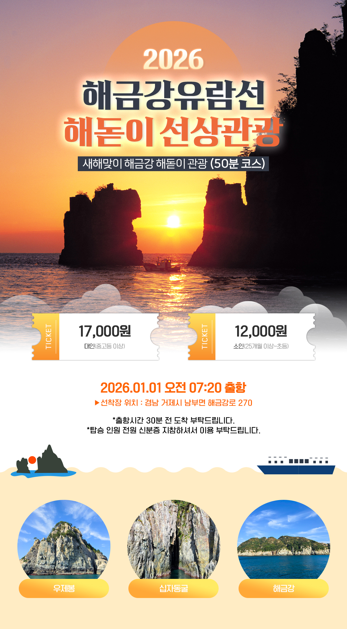 (유람선 매표소에 출발시간보다 30분전에 도착하셔야 합니다.최소30분전에 도착을 못하실경우,
