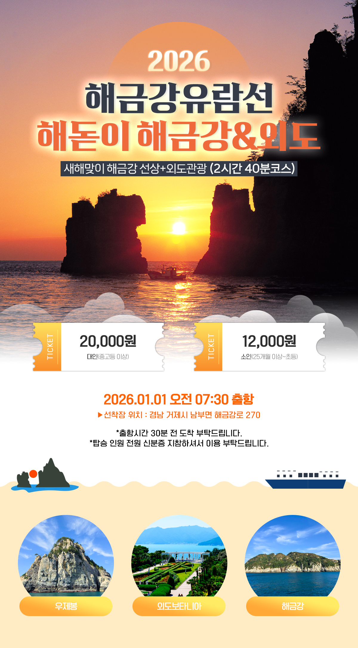 (유람선 매표소에 출발시간보다 30분전에 도착하셔야 합니다.최소30분전에 도착을 못하실경우,