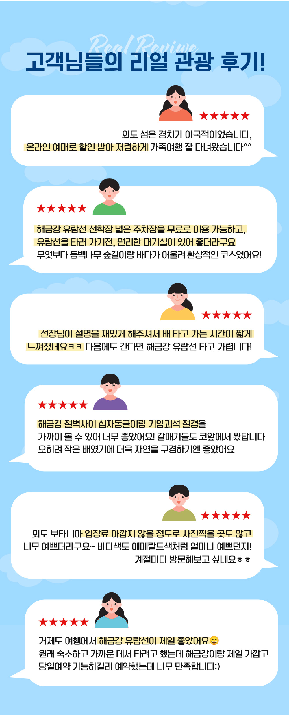2.20명이상 모객시 출항가능하며 모객부족으로 인하여 유람선 출항이 지연 또는 결항시 사전연락드립니다.